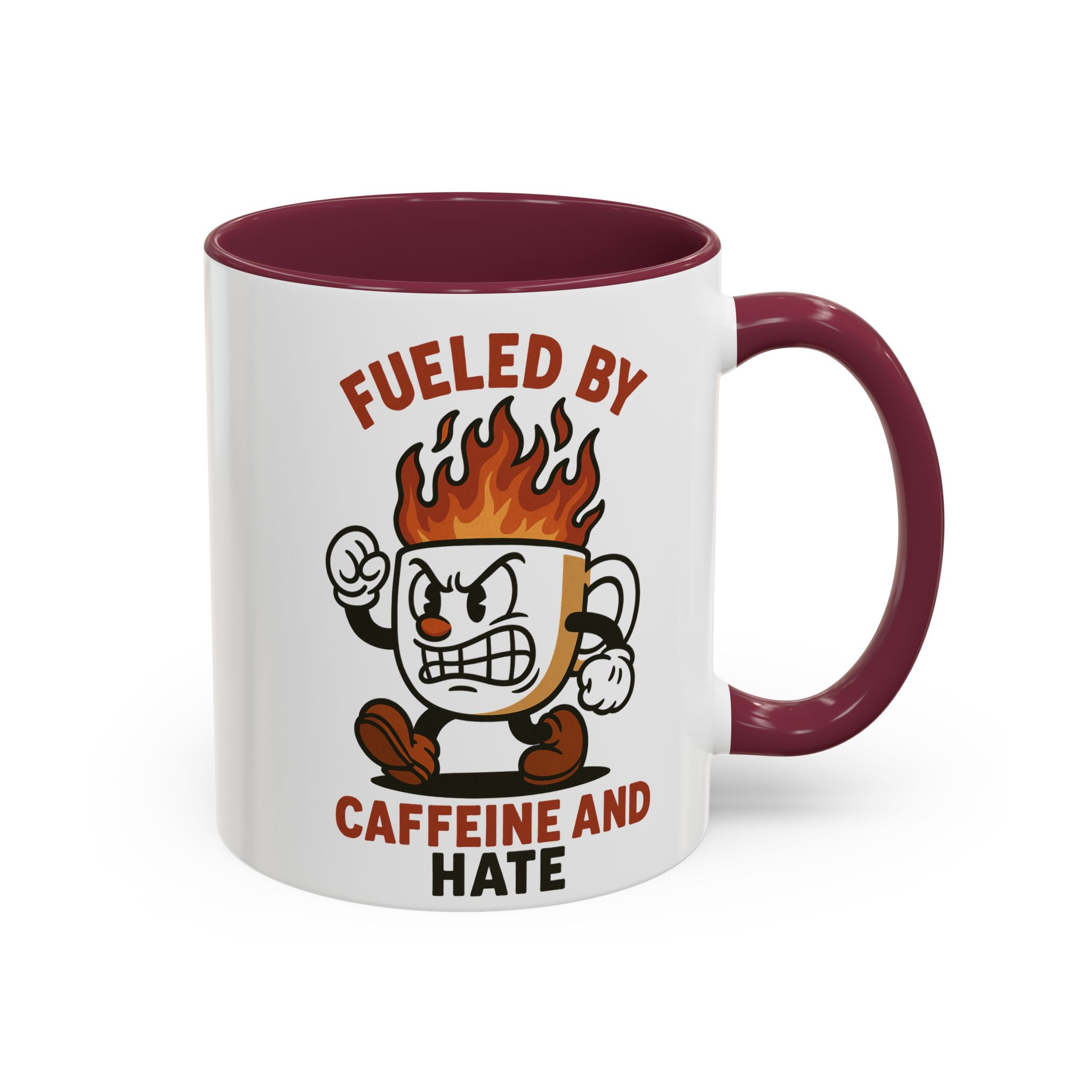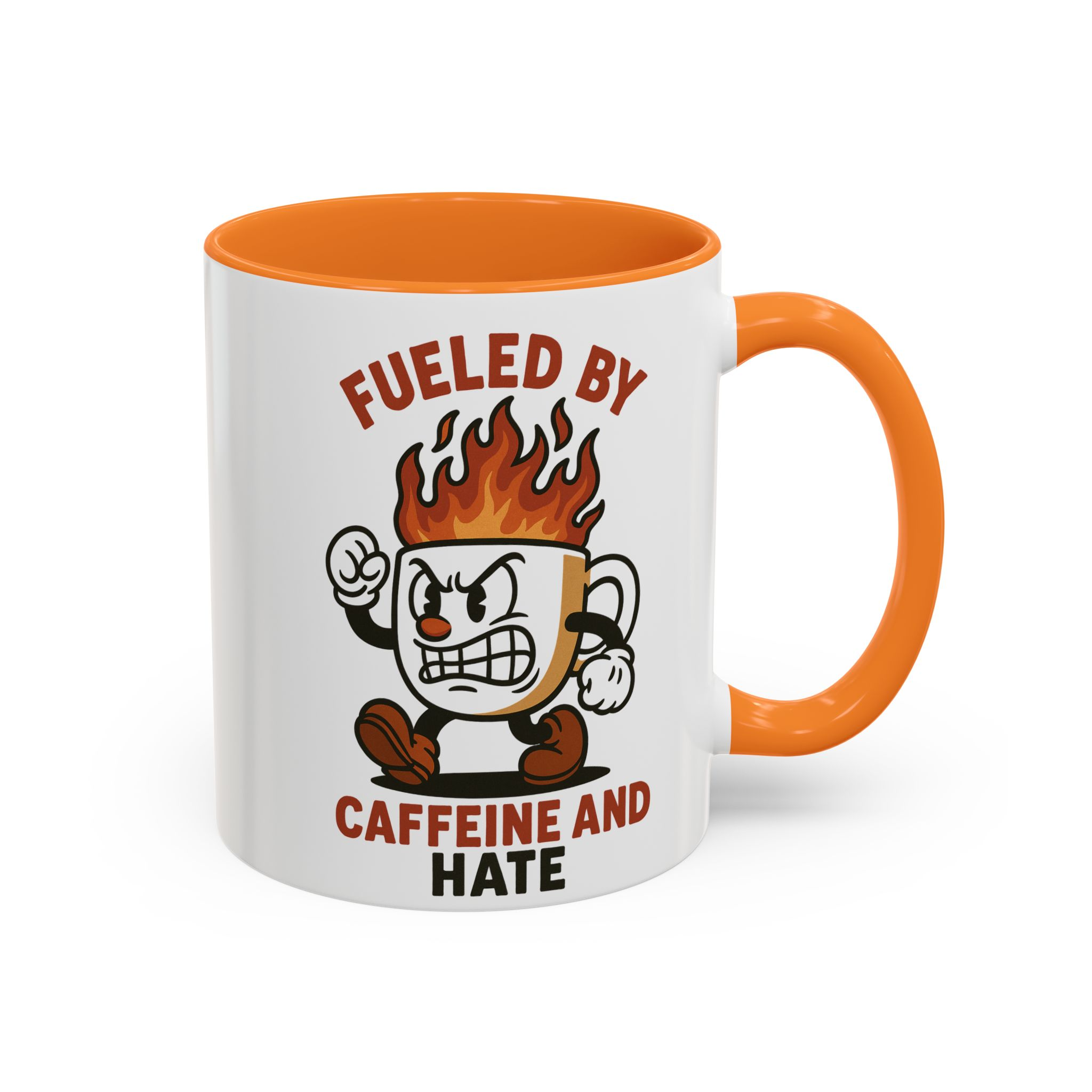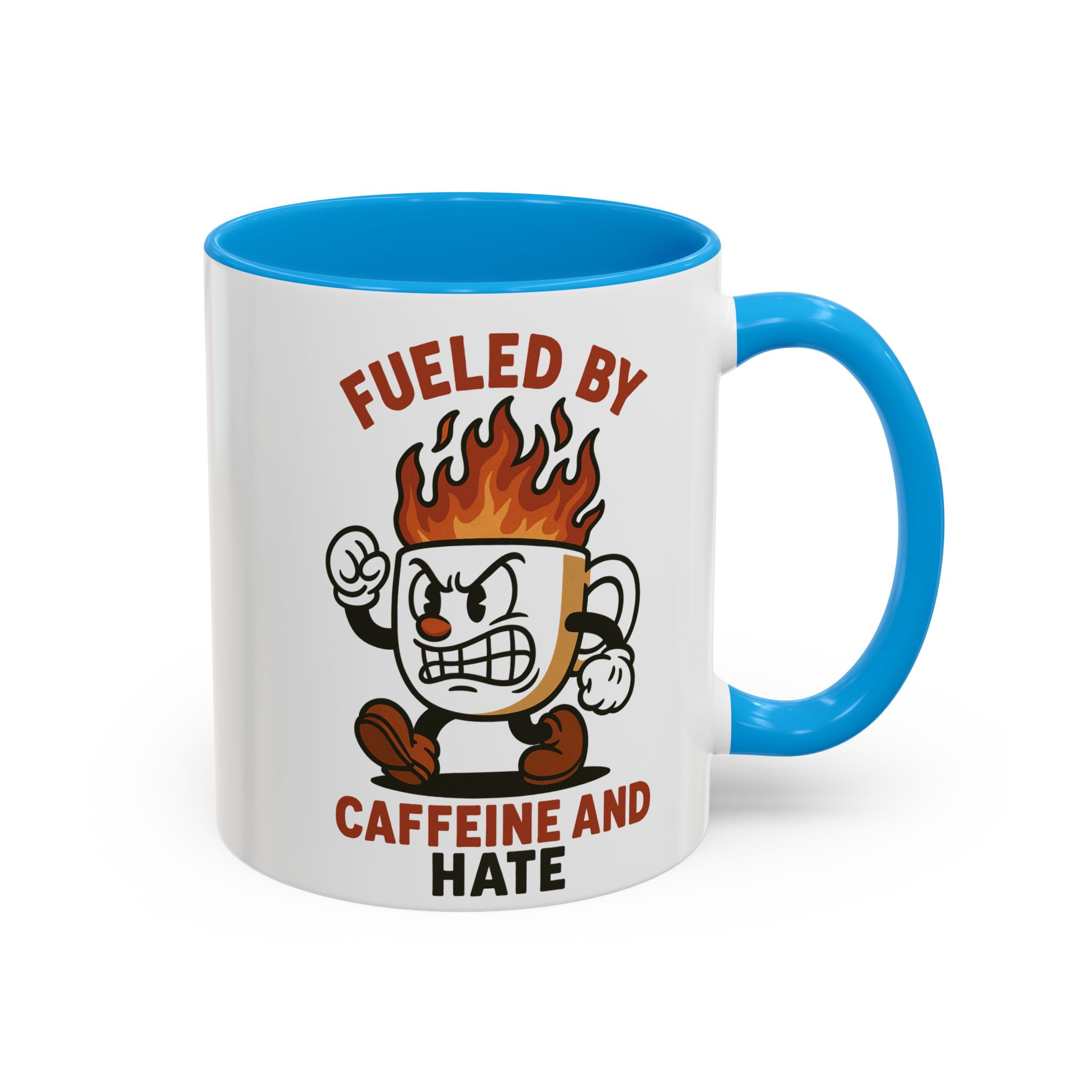 This funny retro style coffee mug titled ‘fueled by caffeine and hate’ features an angry coffee cup with flames coming out of the top. Perfect for those who enjoy whimsical and sarcastic designs, this mug is ideal for anyone who needs a caffeine boost. Great for coffee lovers, office workers, and those who appreciate a good laugh. Perfect for gifting on birthdays, holidays, or just because.