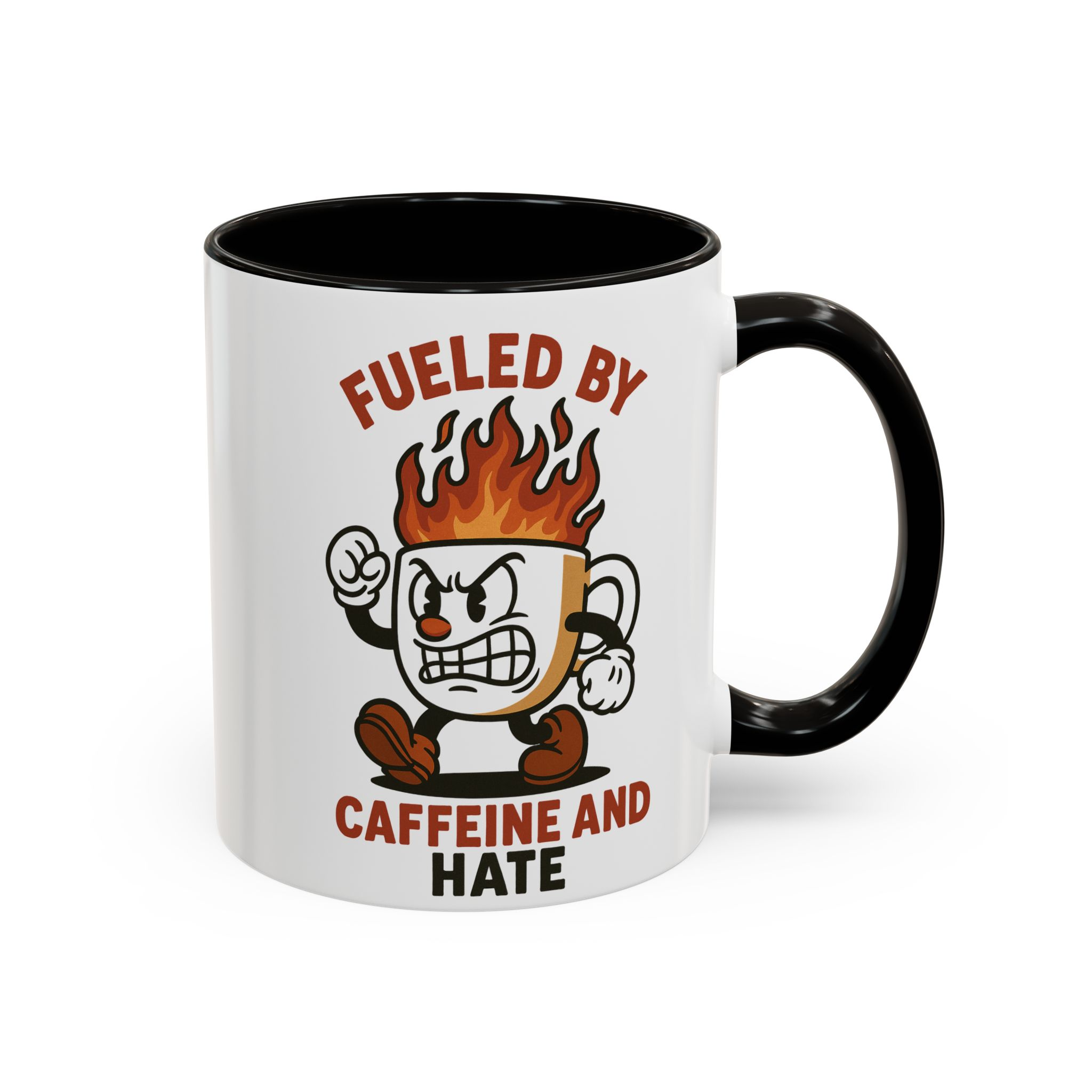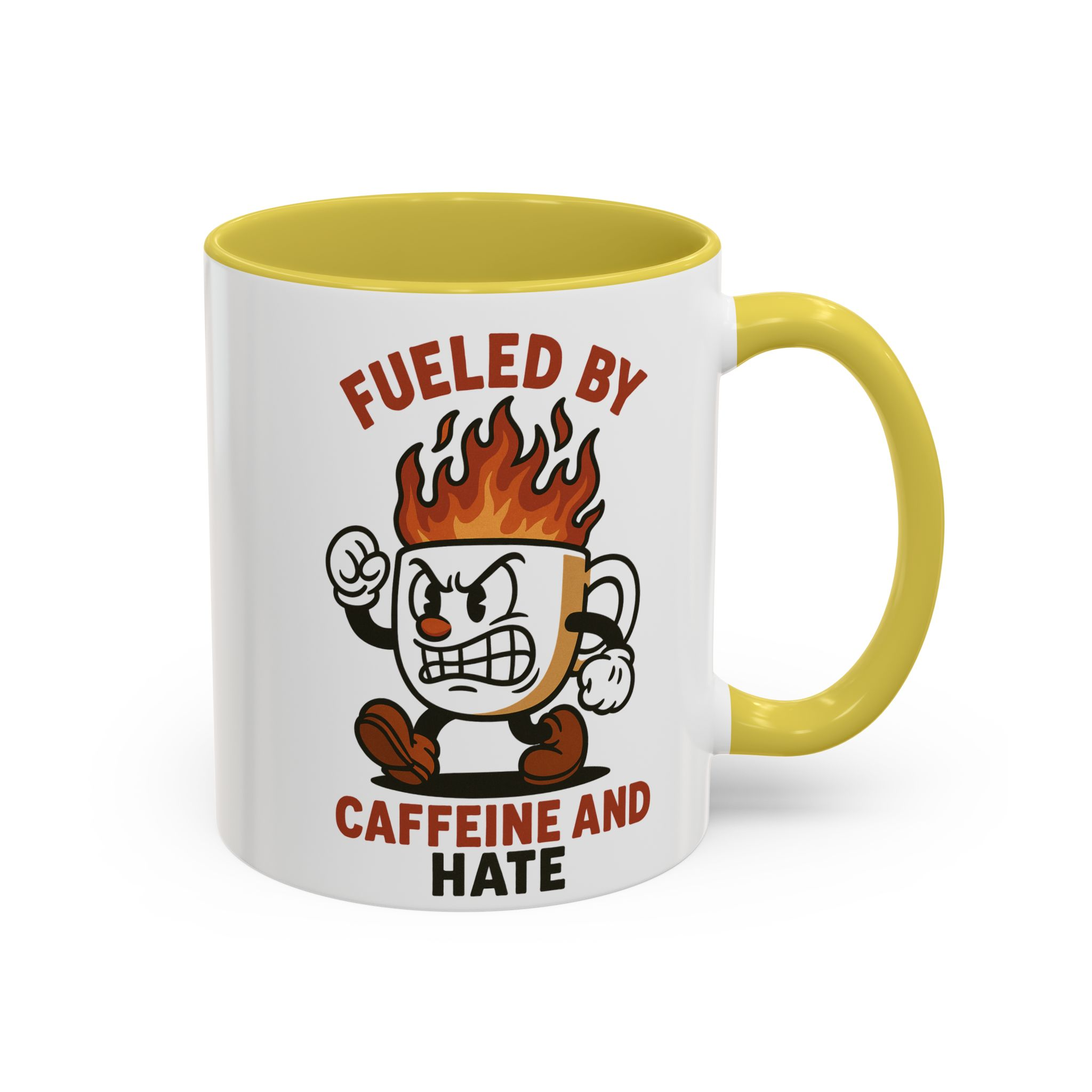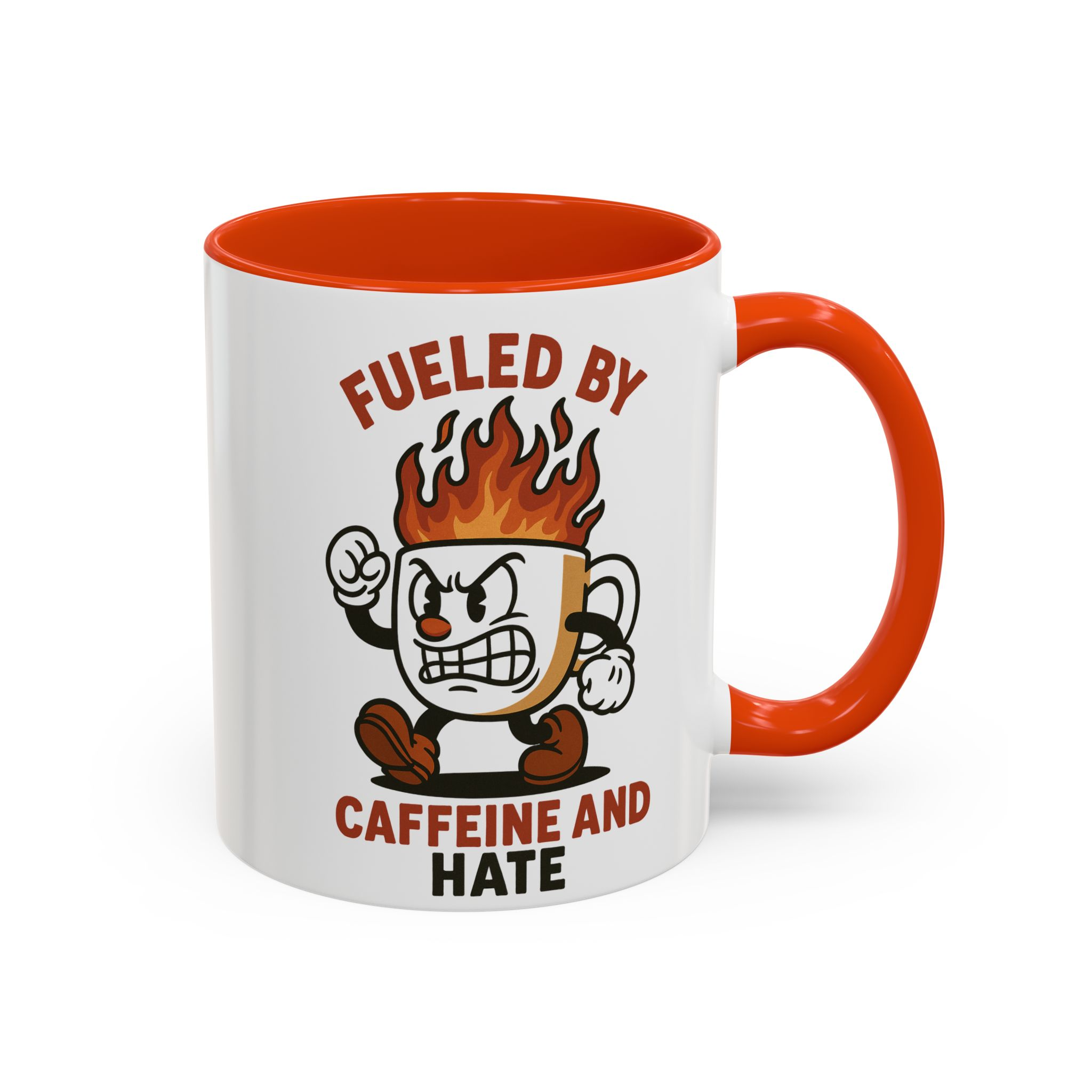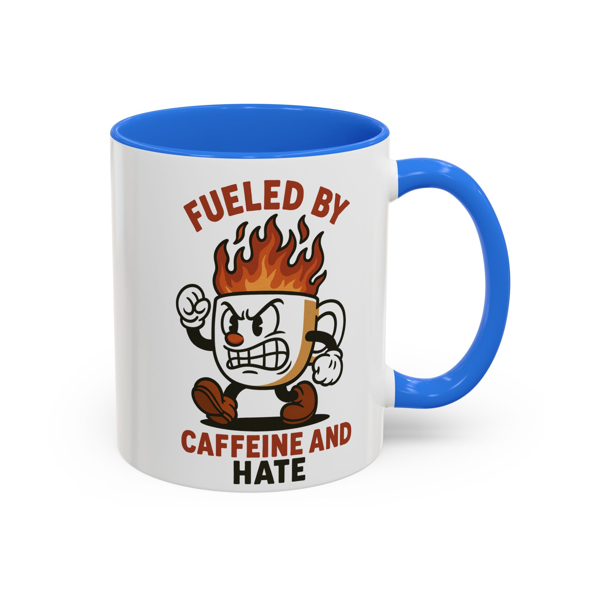This funny retro style coffee mug titled ‘fueled by caffeine and hate’ features an angry coffee cup with flames coming out of the top. Perfect for those who enjoy whimsical and sarcastic designs, this mug is ideal for anyone who needs a caffeine boost. Great for coffee lovers, office workers, and those who appreciate a good laugh. Perfect for gifting on birthdays, holidays, or just because.